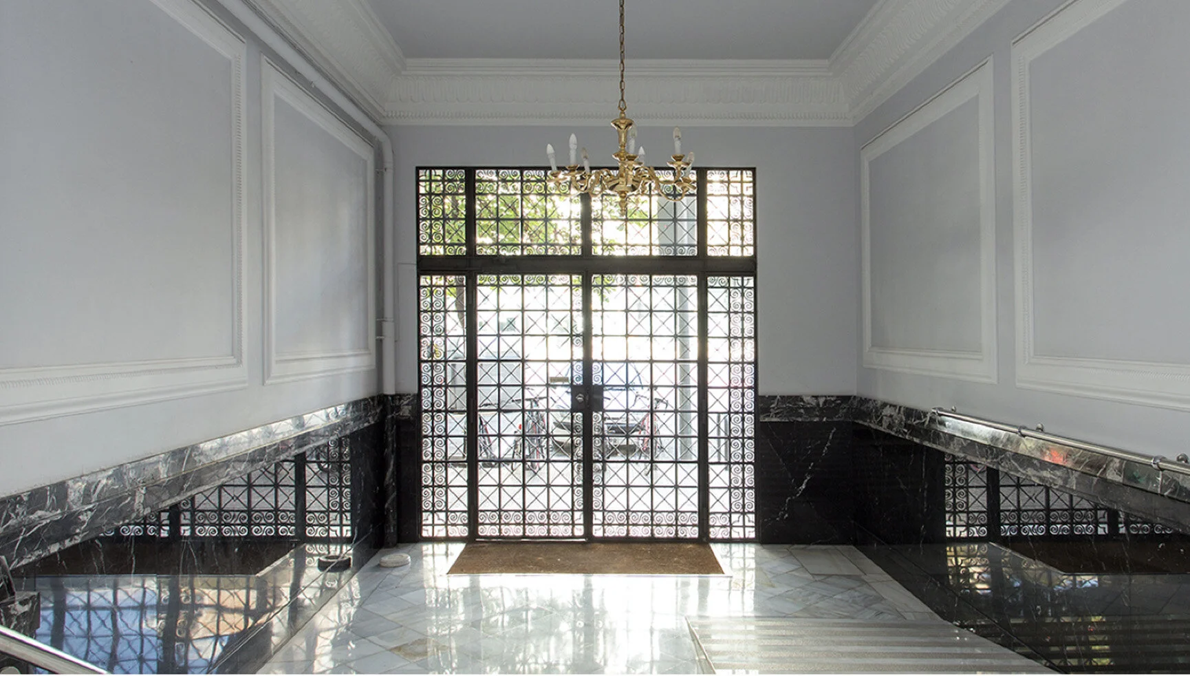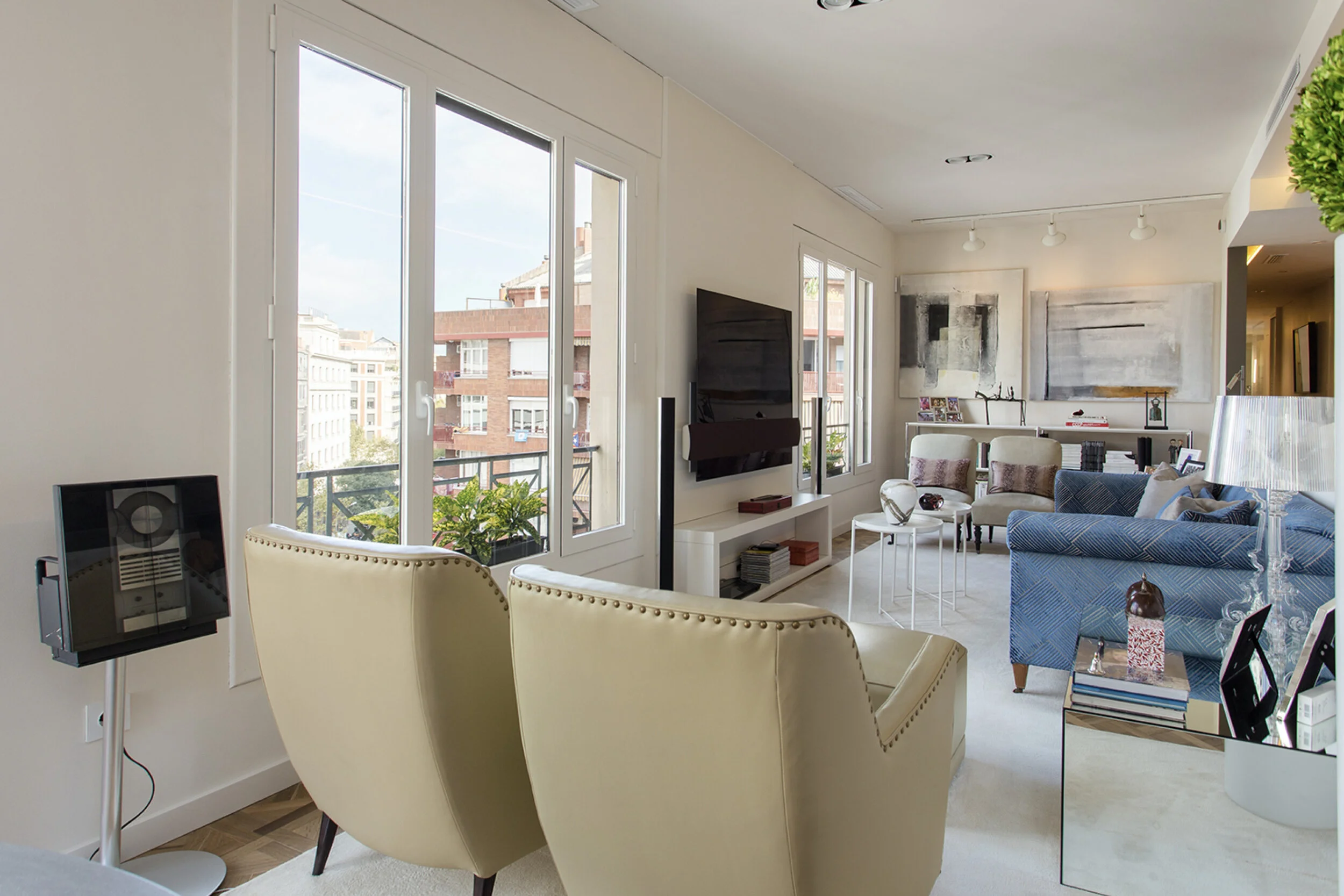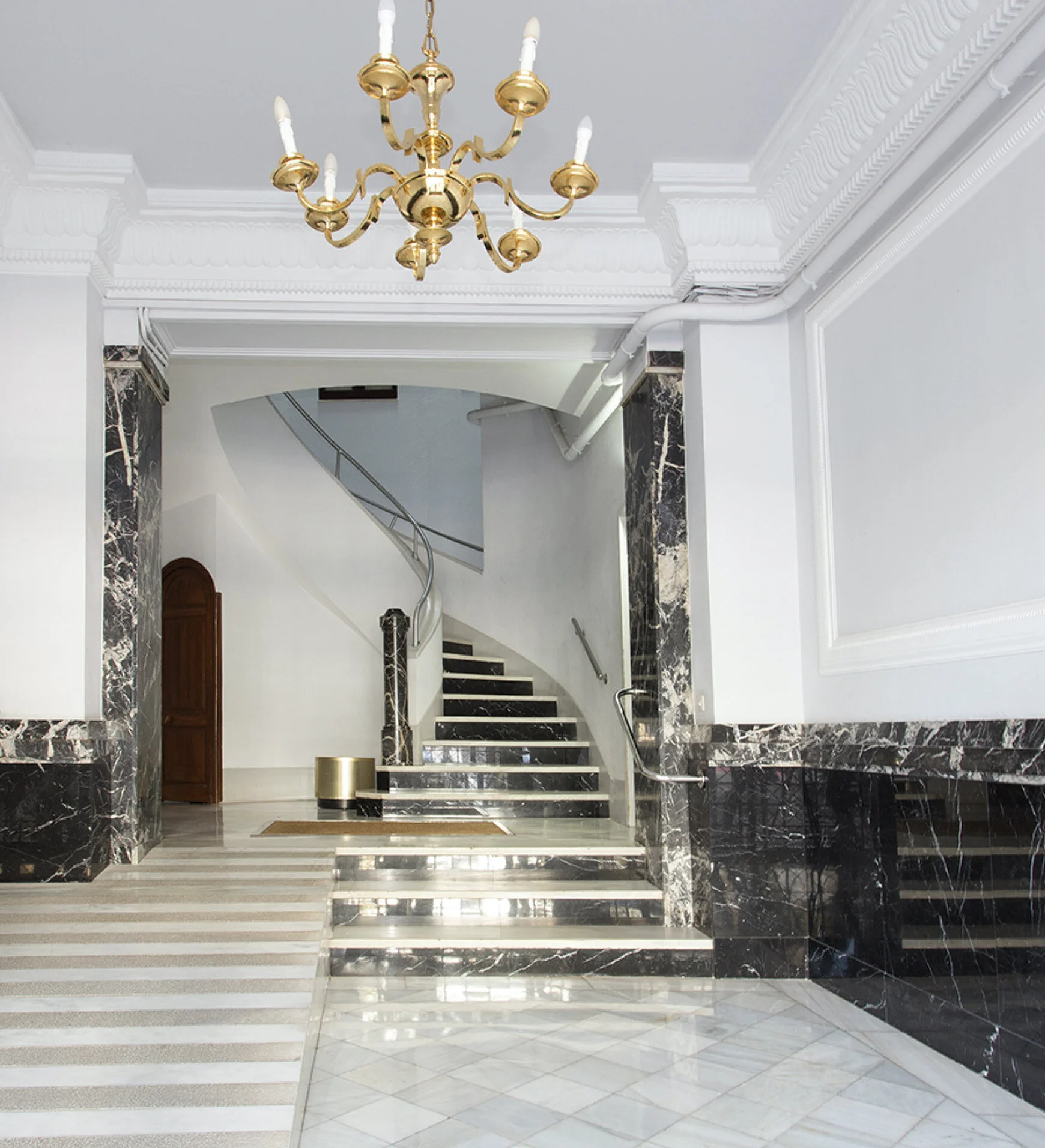 A former archive (1915) was transformed into a sophisticated apartment on a chic pedestrian street in Barcelona.